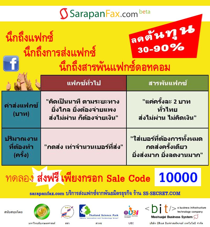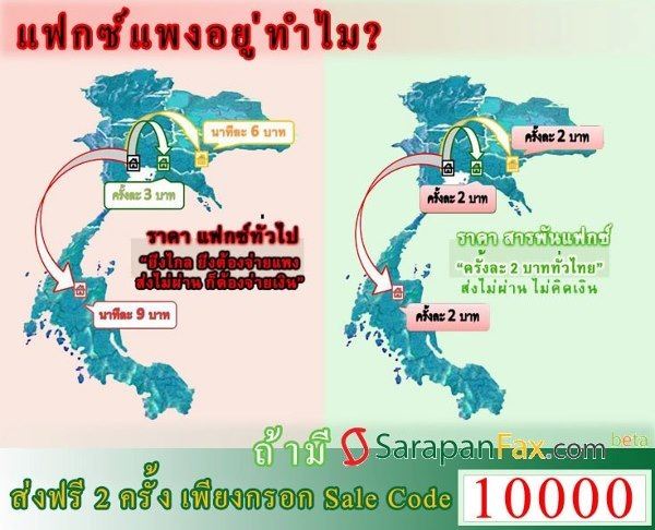 ทดลอง ส่งแฟกซ์ฟรี 2 ครั้ง เพียงกรอก Sale Code 10000 (หนึ่งหมื่นถ้วน)