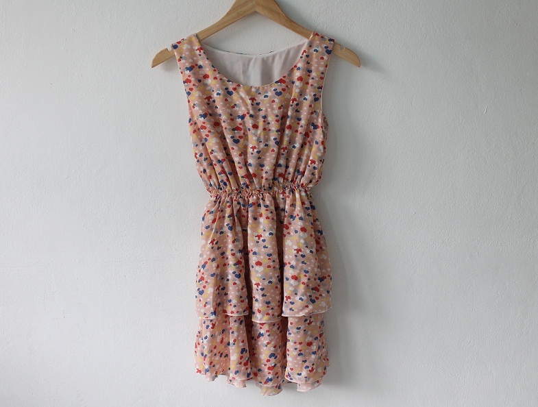 NEW ** เดรสผ้าชีฟองลายหัวใจสีสันสดใส เอวยางยืด