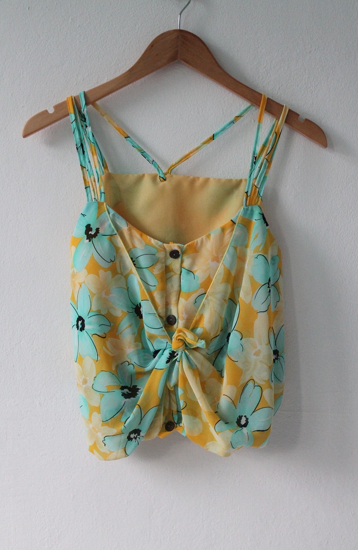 Used Once ** เสื้อสายเดี่ยวลายดอกไม้สีฟ้า เหลือง น่ารักมาก ใส่ไปทะเลแค่ครั้งเดียวค่ะ