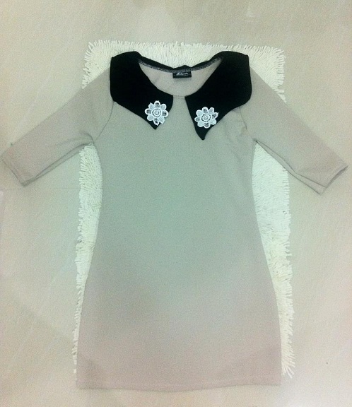 NEW ** เดรสทรง A สีครีมนู๊ด ปกดำดอกไม้ เนื้อผ้าอย่างดีไม่ใช่ผ้ายืดนะคะ