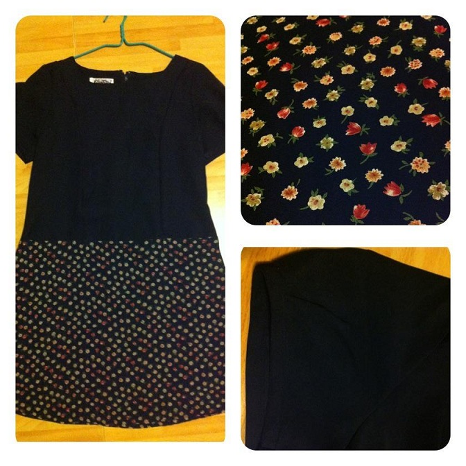 USED ONCE ** Dress สีกรมท่า ต่อกระโปรงลายดอกไม้ ผ้านิ่มใส่สบายค่ะ