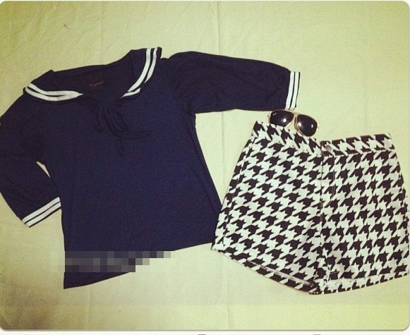 เสื้อแขนยาว , กางเกงขาสั้นเอวสูง