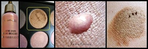 นำ MAC Lustre Drops สี Pink Rebel มาผสมกับสีที่ 2 จากพาเลต ตามรูป