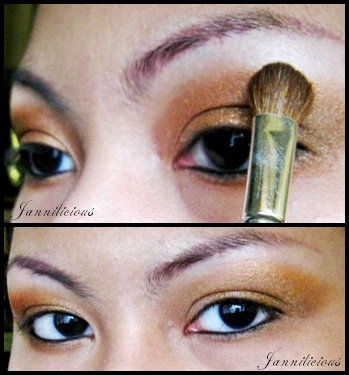 ให้ได้เนื้อข้น ๆ หน่อย แล้วทาทับไล่ระดับ เว้นหัวตา แต่เน้นหางตานะคะ เบลนให้สีกลืนกัน
