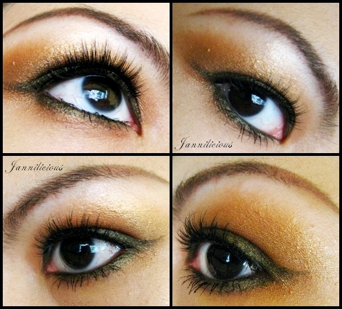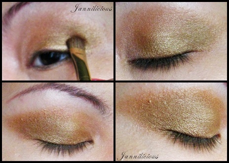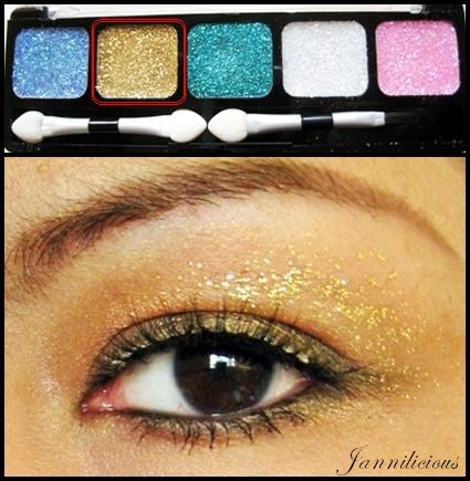 นำสีทองจาก NYX Glitter Cream Palette แต้มทับ eyeshadow ลงไปเลย ตามภาพค่ะ