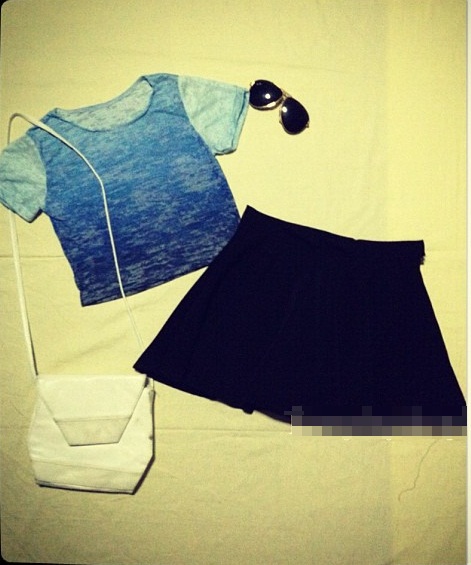 เสื้อcrop สีดำ กับกระโปรง