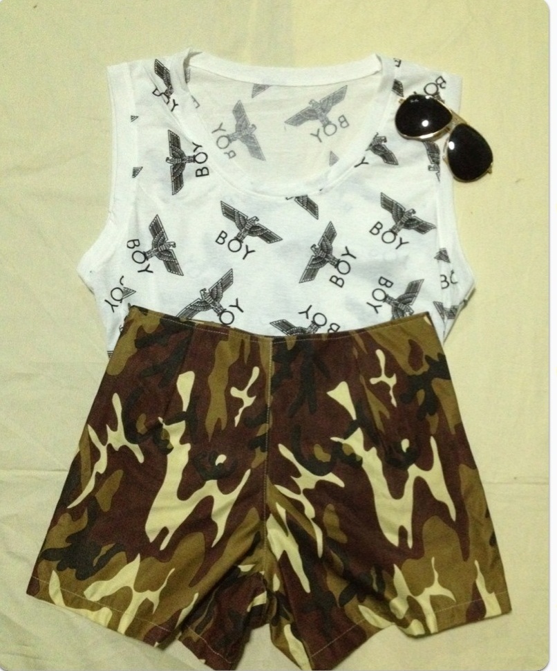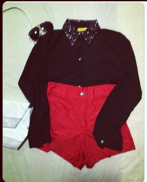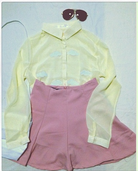 เสื้อแขนยาว , กางเกงขาสั้นเอวสูง