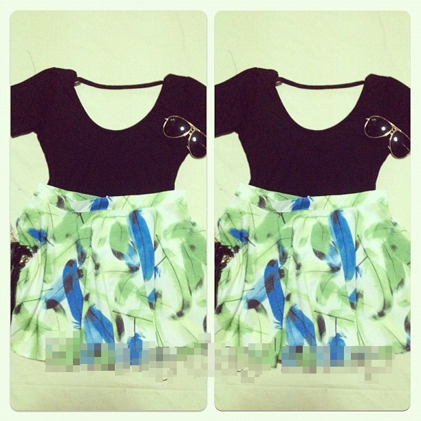 เสื้อ crop กับ กระโปรงสวิงสีดำ ผ้าฮานาโกะ