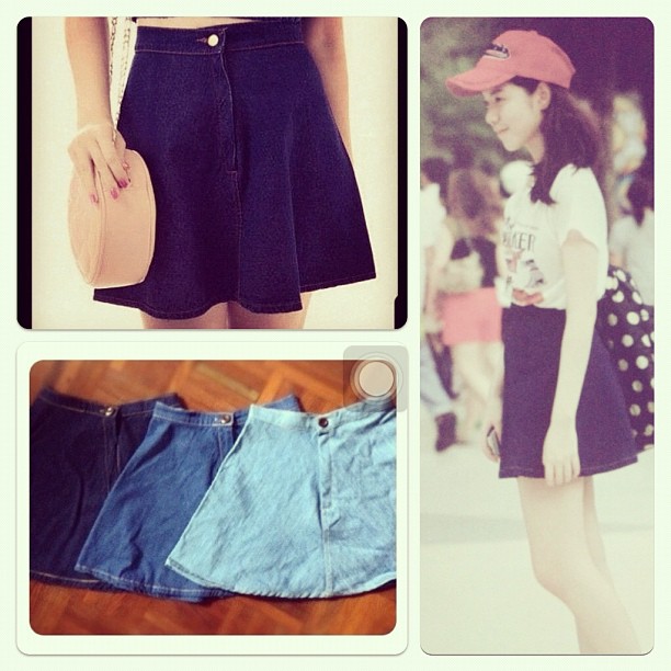 10)กระโปรงยีนทรงบานๆ(เหลือสีซีดกับสีกลาง) สวยๆค่ะ