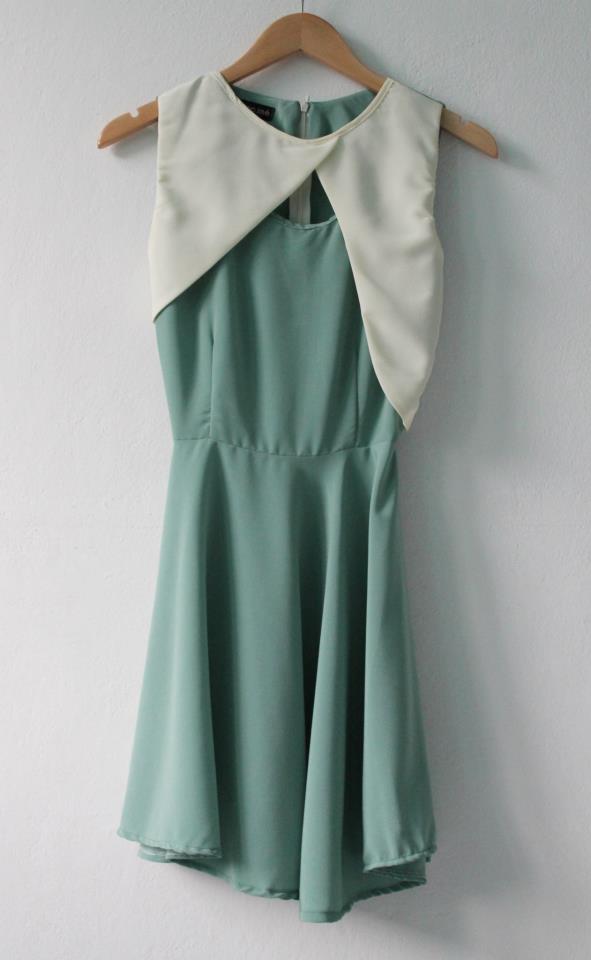 New** Dress สีเขียวพาสเทล ปกสีครีม ซิปหลัง เอวเป็นยางยืดเฉพาะด้านหลัง ชุดนี้ไม่มีซับในค่ะ