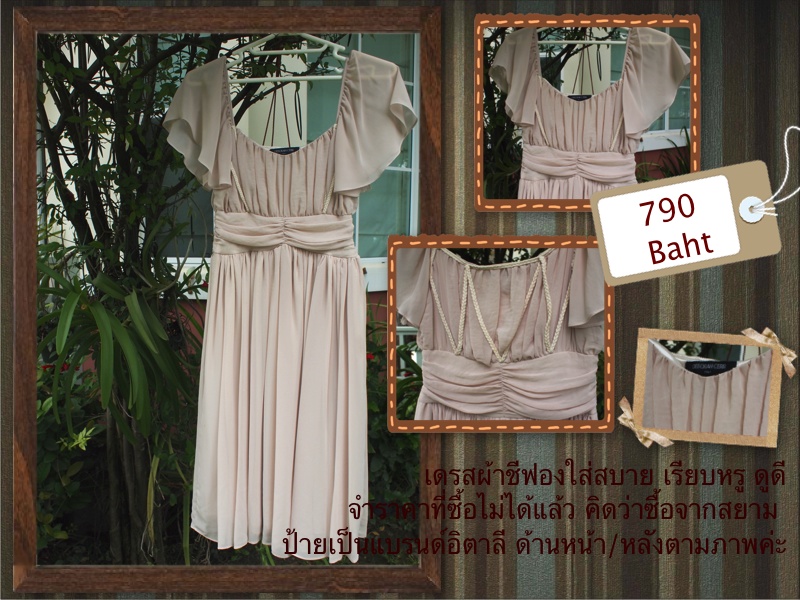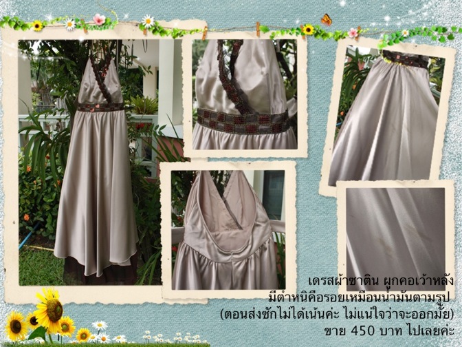 ชุดนี้ใส่เพียงครั้งเดียว ส่งซักแห้งและเพิ่งสังเกตุเห็นรอยน้ำมันตามรูปค่ะ เนื่องจากเว้าหลังและกระโปรงบานสามารถใส่ได้สำหรับ Size S-M
