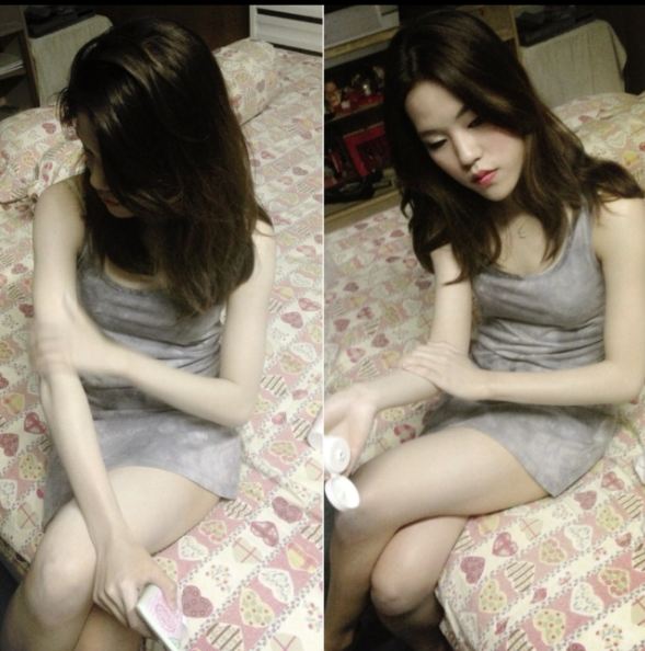 รูปต่อไปคือทาบีบีแล้วค่ะ สังเกตตรงขาด้านล่างนะคะ จะมีส่วนที่ยังไม่ได้ทา จะเห็นสีผิวที่ต่างกันเลยค่ะ
