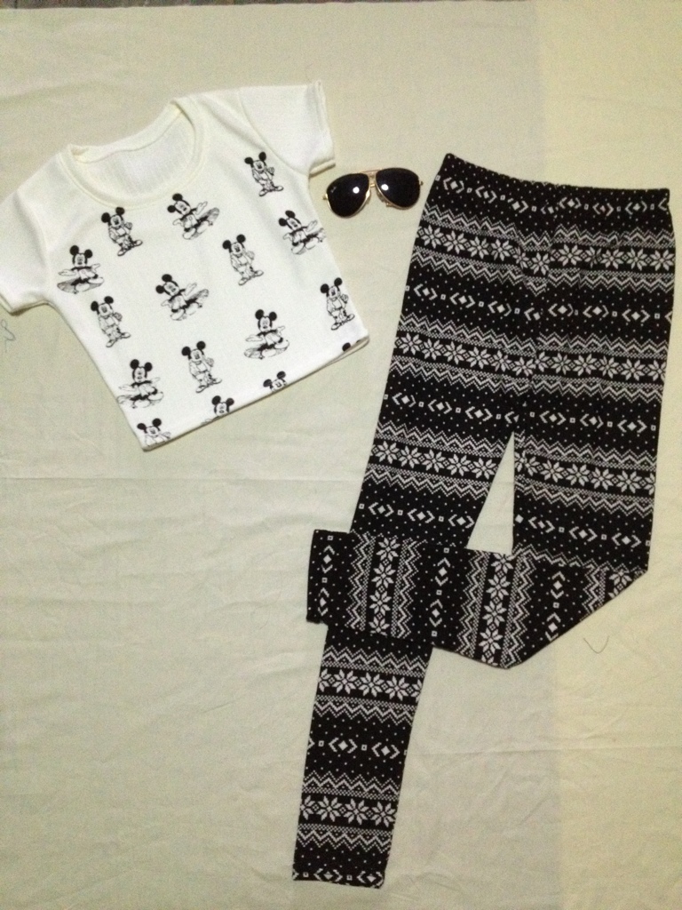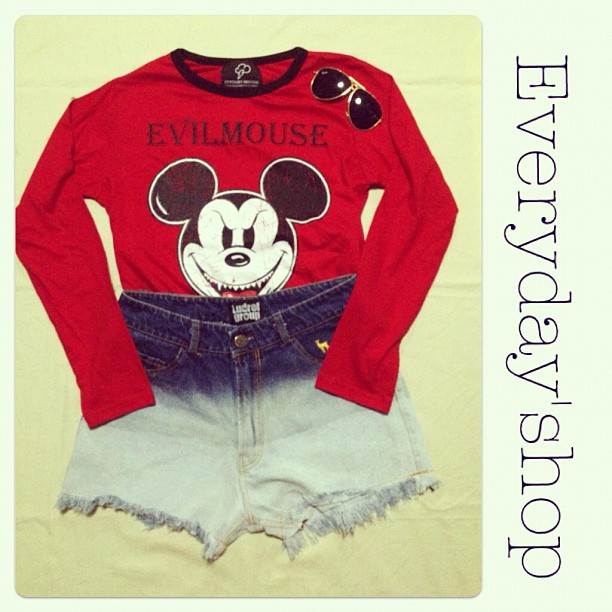 เสื้อแขนยาวมิกกี้ กางเกงยีนขาสั้น