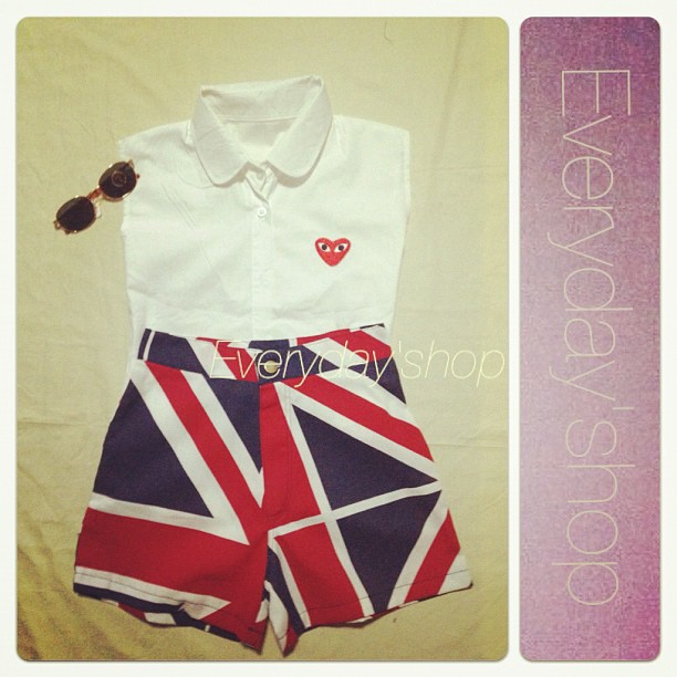 1)เสื้อplayแขนกุด กางเกงเอวสูงUS