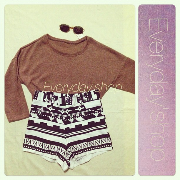 7)เสื้อแขนยาวถึงศอก สีน้ำตาล(หมด) เหลือสีเทารูปล่าง กางเกงลายกราฟฟิค