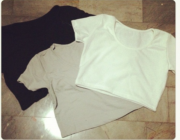 18)เสื้อcrop สีขาว ดำ เทา