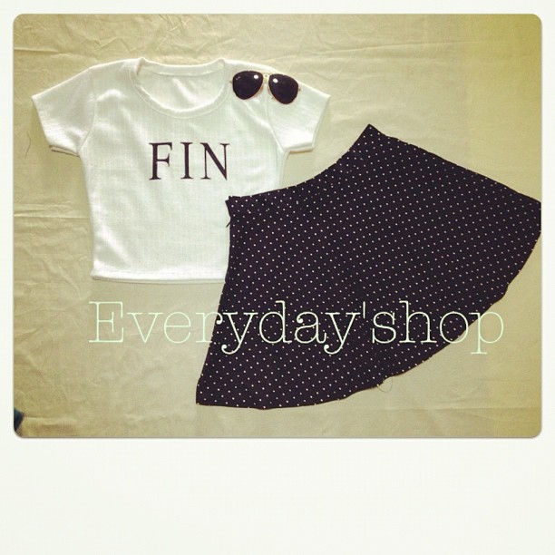 เสื้อฟิน กระโปรงสวิงจุดสีดำ