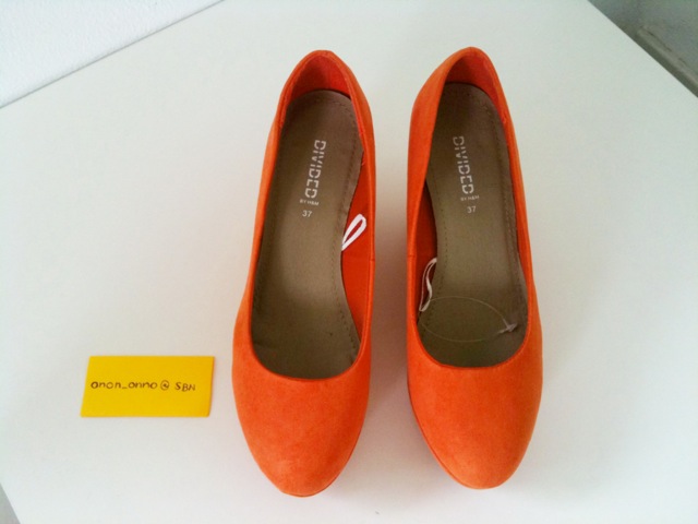 รองเท้า H&M หนังกลับสีส้มแปร๊ด เบอร์ 6 สูง 3.5"