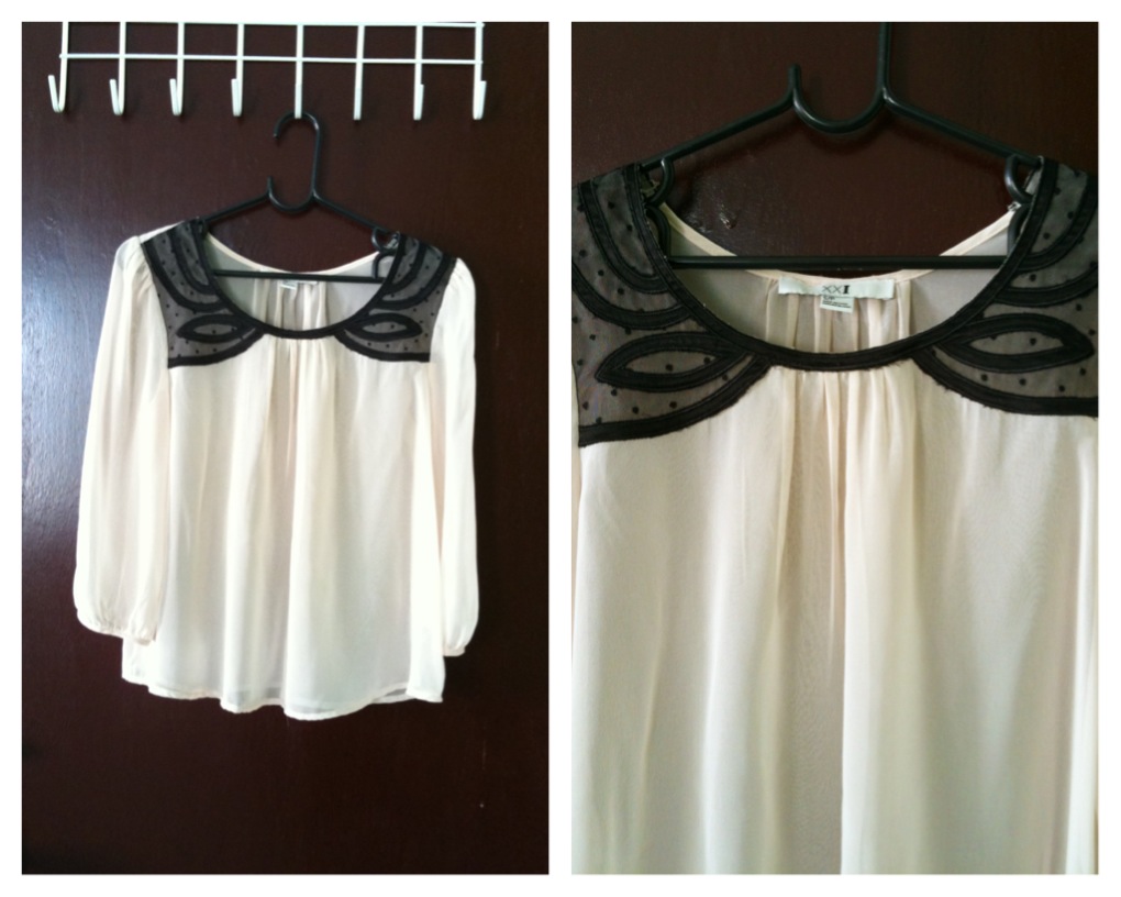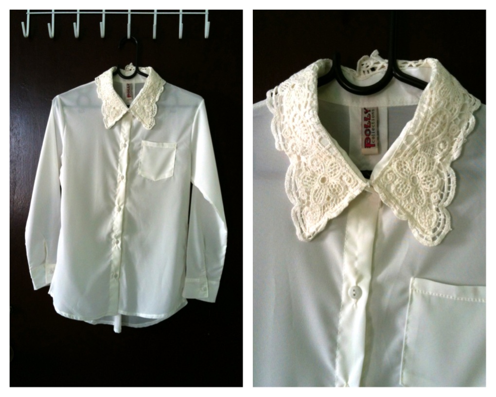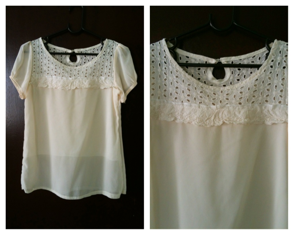 เชิ้ตสีครีมคอลูกไม้ ฟิต S,M ราคา 90 บาท