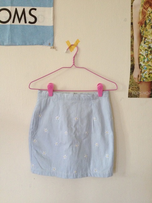 Sweetpepper Blue Flora Skirt - กระโปรงเอวสูงสีฟ้าลายดอกไม้ปัก (ของใหม่)