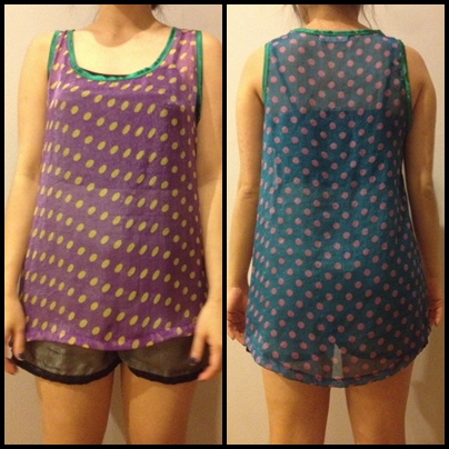 1. แขนกุดซีทรูลายจุด หน้าหลังคนละสี ขาย 100 บาท ลดอีกเหลือ 80บาท
