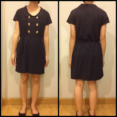 3.เดรสสีน้ำเงินกรมติดกระดุมทอง เอวยางยืดด้านหลังค่ะ ตัวจริงสีสดกว่าในรูป ไม่โทรมแน่นอนค่ะ ขาย 150บาท ลดอีกเหลือ 120 บาท