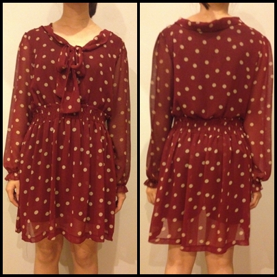 5.เดรสลายจุดสีแดง เอวสม๊อคค่ะ ใส่สบายมีซับในค่ะ ขาย200บาท ลดอีกเหลือ 150 บาท