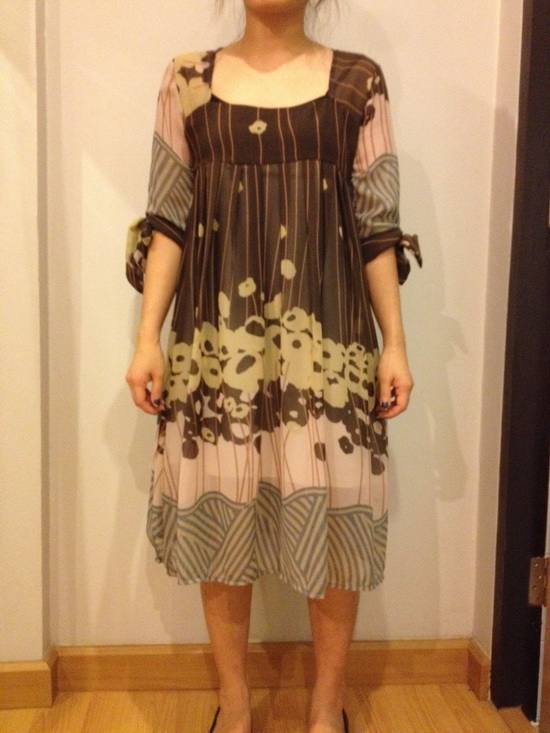 10.เดรสลายพิมพ์สีครีมดำ เอวยืดค่ะ ครึ่งบนเป็นผ้าซีทรู ขาย 200 บาท ลดอีกเหลือ 150 บาท