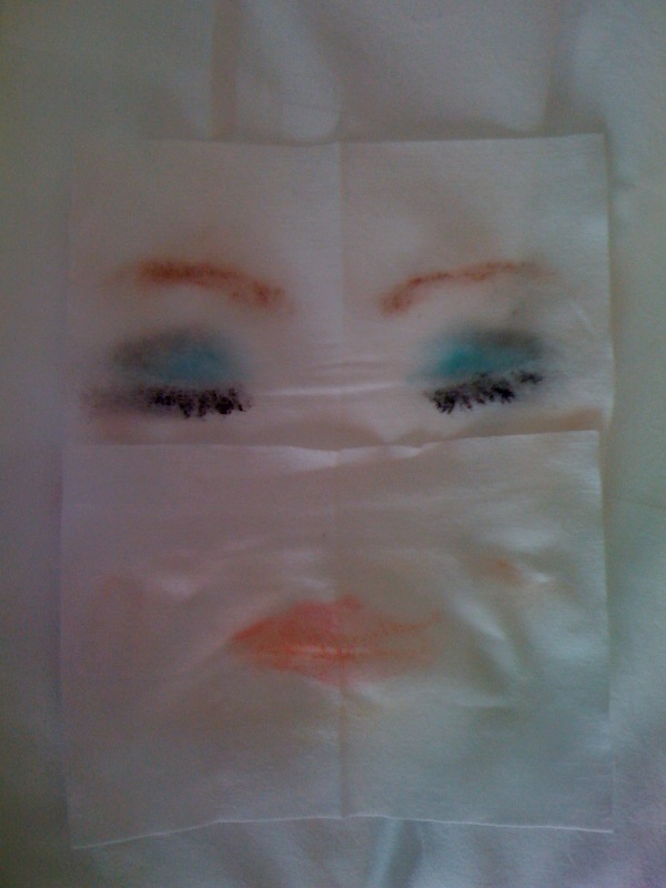 รูปตัวอย่างจากการแปะสำลีทิ้งไว้ 1 นาที แล้วเอานิ้วลูบเบาๆไปบนสำลี ออกมาเป็นแบบนรูปเลย และพอเช็ดเบาๆอายไลน์เนอร์แบบกันน้ำก็หลุดออกมาเป็นเส้นๆเลยค่ะ