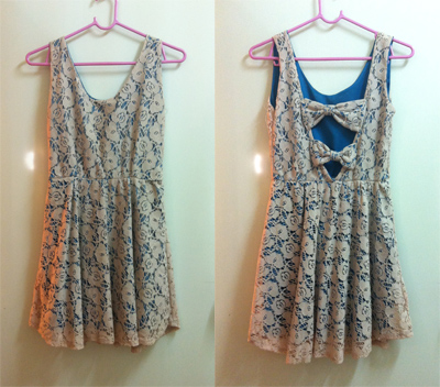 เดรสลูกไม้ ด้านหลังเป็นโบว์น่ารักค่ะ มีซับในไม่โป๊ 150 บาท