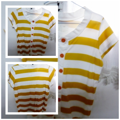 9.เสื้อลายทางเหลือง ทรงน่ารัก