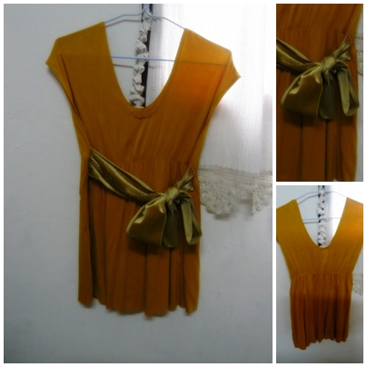 20.เสื้อตัวยยาวต่อใต้อกสีเหลือง มีโบว์คาด