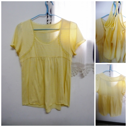 23.เสื้อแนวหวาน สีเหลือง มีสายเดียวสีเหลืองแถมให้ใส่ข้างในด้วยค่ะ