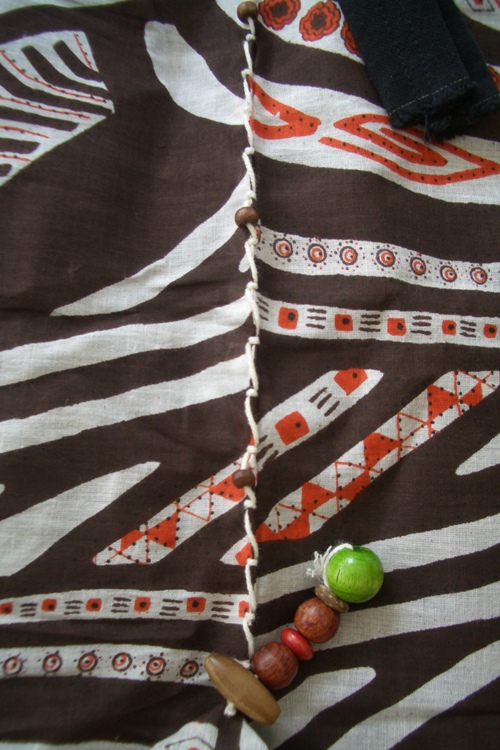 ด้านข้างเย็บได้น่ารักมาก ๆ ค่ะ มีเม็ดไม้สี ๆ ห้อยทั้ง 2 ข้าง