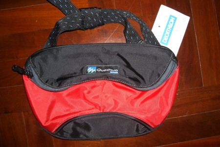 กระเป๋าคาดเอวสีแดง ยี่ห้อ Decathlon ราคา 100 บาท