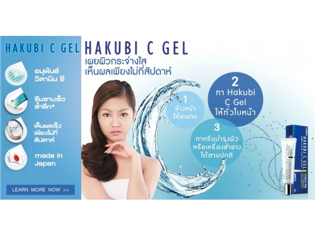 HAKUBI C GEL 20g. ยอดฮิตจากญี่ปุ่น (New) เวชสำอางค์บำรุงผิวหน้าที่มาในรูปแบบของเจลมีส่วนผสมของอนุพันธ์วิตามินซีเข้มข้นที่ซึมซาบเร็วไม่เหนียวเหนอะหนะเพื่อความขาวกระจ่างใสแก้ปัญหาความหมองคล้ำบนใบหน้าและรอยจุดด่างดำได้อย่างตรงจุด รูขุมขนกระชับขึ้น พร้อมบำรุงผิวให้แข็งแรงมีสุขภาพดี ราคา 800 ค่ะ