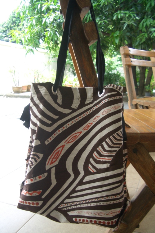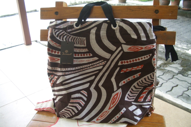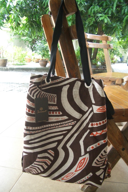 กระเป๋าสะพายสีน้ำตาล ตัวกระเป๋าเป็นผ้าไหม สายสีดำเป็นผ้าฝ้ายค่ะ ราคา 120 บาท