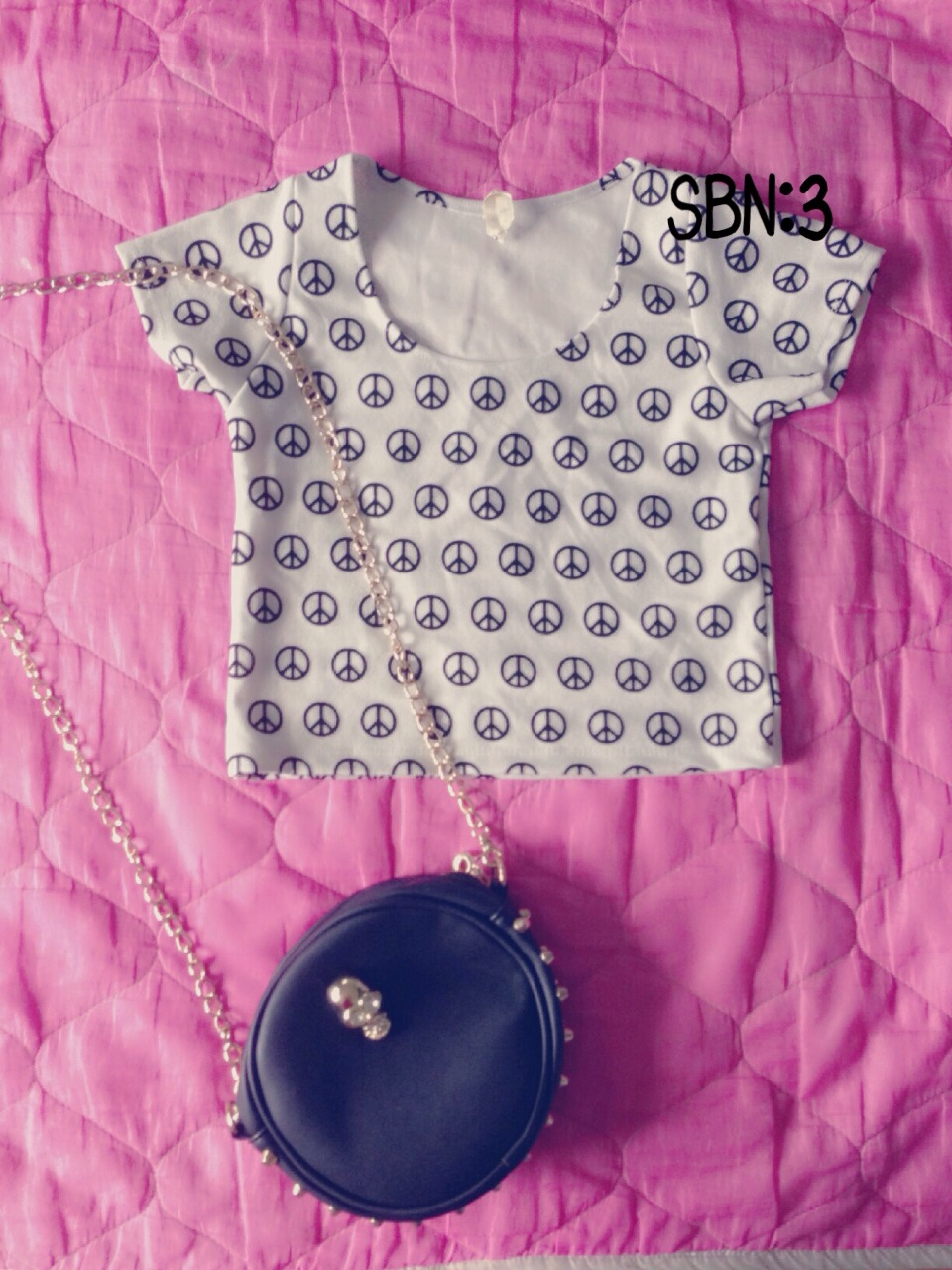 2)เสื้อครอปลายพีชสีขาวผ้านิ่ม 100บาท