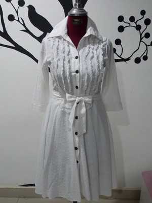 item1 # เดรสสีขาวล้วน ผ้านูนลายจุด