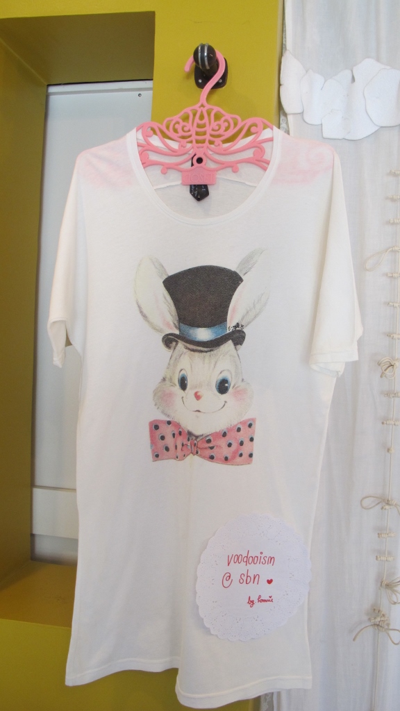 used >> t-shirt สกรีนรูปกระต่าย แขนประมาณศอก ใส่เป้นเดรสก็น่ารักนะค่ะ ใส่หนเดียว sale 200 บาท