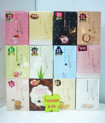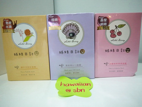 ตัวนี้ที่ไต้หวันก็ฮิตไม่แพ้ My beauty diary เลยค่ะ คุณสมบัติของ Mask Sister Diary ตัวนี้ใช้แล้วเหมือนกับของ My beauty diary ทุกประการเลยค่ะ ซองและแพ็คเกจทุกอย่างคล้ายกันค่ะแต่คนละยี่ห้อเท่านั้น ดูข้อมูลจากเว็บได้เลยค่ะ http://www.sisterdiary.com.tw/ มีสูตรตามนี้เลยค่ะ