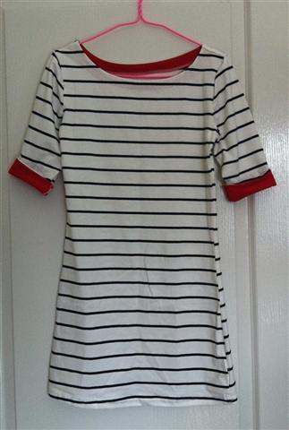 10ของใหม่ เดรสผ้ายืด ลายขวาง ขลิบแดง 250