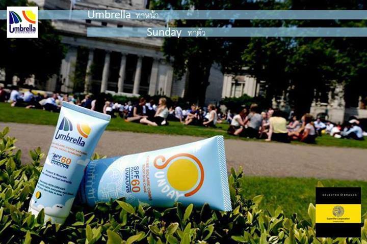 Sunday by Umbrella ใช้ทุกที่ ที่ มีแสงแดด..."ใช้ทุกวันที่ มีดวงอาทิตย์" ครีมกันแดดทาตัว "คง concept เดิมของ Umbrella เนื้อเบา สบาย ทาง่าย ไม่เหนอะ"