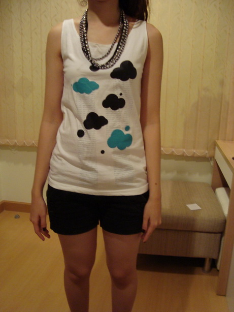 1. เสื้อกล้ามสีขาว ลายก้อนเมฆ ซื้อจากสยามตลอนกลางคืน ใส่ครั้งเดียว >> 100