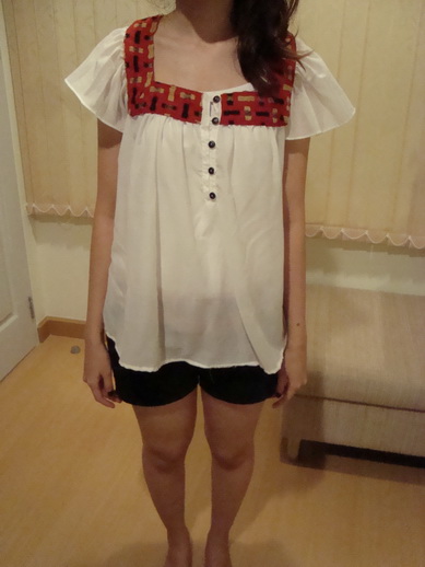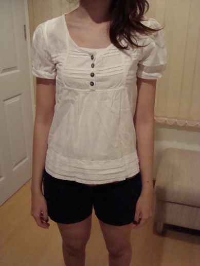 10.เสื้อสีขาว กระดุมไม้ เรียบๆ แต่น่ารักค่ะ >> 100