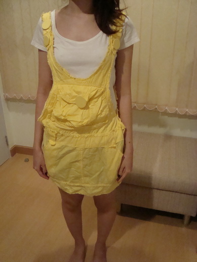 11. เอี๊ยมสีเหลืองสดใส ใส่ครั้งเดียว ในรูปยับไปหน่อยนะคะ ยังไม่ได้รีด >> 100
