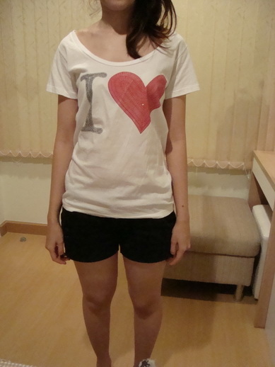 12. เสื้อยืด i love สีขาว ซื้อจากใต้ลิโด้ ดูใกล้ๆ ตรงหัวใจ จะมีคำว่า love หลายๆตัวเรียงกันเป็นหัวใจ
