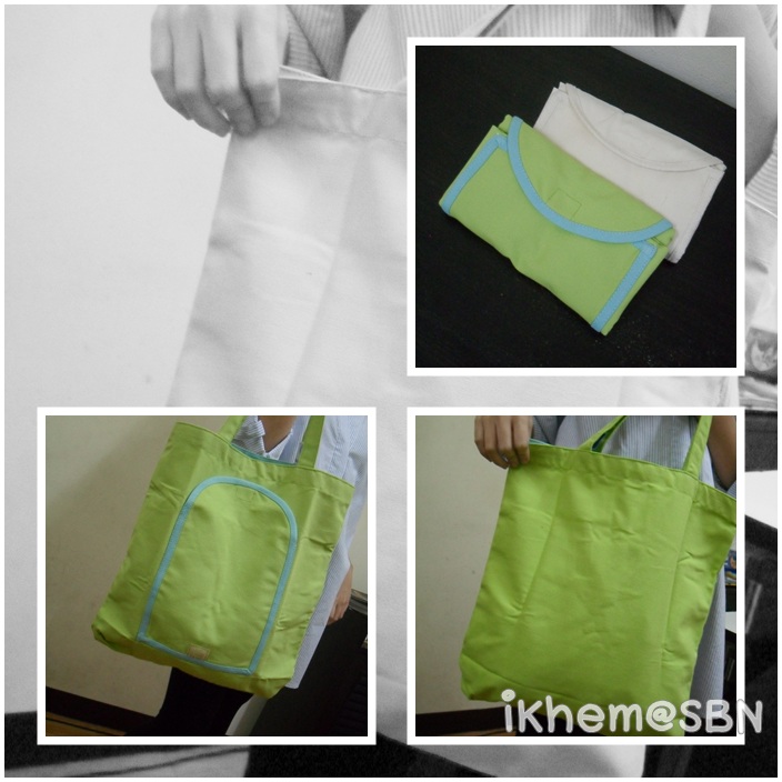 กระเป๋าแบบพกพาค่ะ กระเป๋าใบนี้พิเศษตรงที่สามารถพับเก็บได้พกไว้สำรองเผื่อวันไหนซื้อของเยอะ ก็สามารถเอามากางใส่ของได้อีกใบ มีสองสีให้เลือกค่ะสีครีมกับสีเขียว ขนาดกางออกมาแล้วกว้าง 36 ซม. ลึก 38 ซม. สายยาว 19 ซม. ราคา 180 บาท
