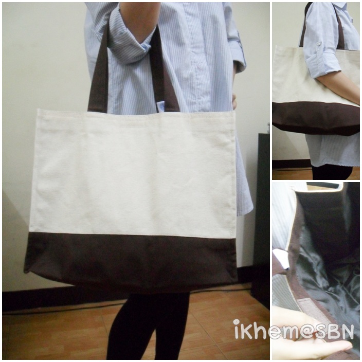 กระเป๋าผ้าดิบสีทูโทนทรงเหลี่ยม ด้านในบุผ้าร่มอย่างดี จุของได้เยอะเช่นเดียวกัน หรือสะพายไปชอปปิ้งก็ดีนะคะ ช่วยรณรงค์ลดโลกร้อนไปในตัวอีกด้วย ขนาดกว้าง 38 ซม. ลึก 31 ซม. สายยาว 23 ซม.ราคาไม่แพง 350 บาท พิเศษ 320 บาท
