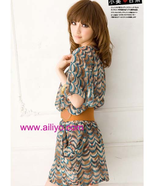 DS02.เดรสผ้าชีฟอง มีซับใน ลายสีน้ำเงิน+น้ำตาล ดีไซน์เก๋สุด ไม่รวมเข็มขัด 590 บาท
